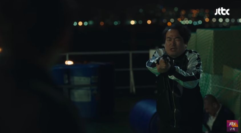 なんと替え玉の男がドンスの落とした銃をドンスに向けてきた。