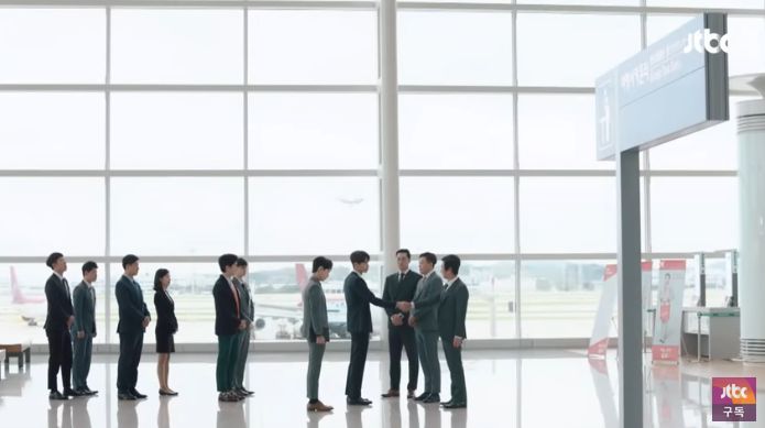 秘書のチョン・ジュファンと空港にやってきた。