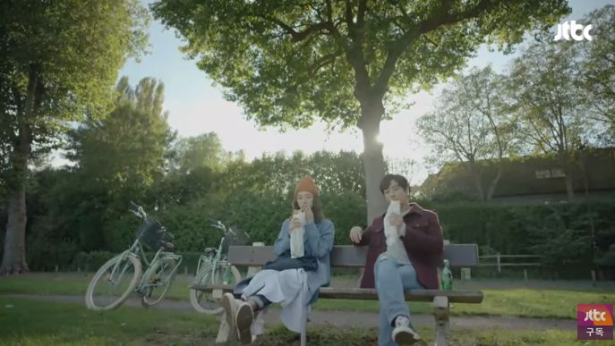 彼氏のギョンジェに水を買ってきてと頼む。