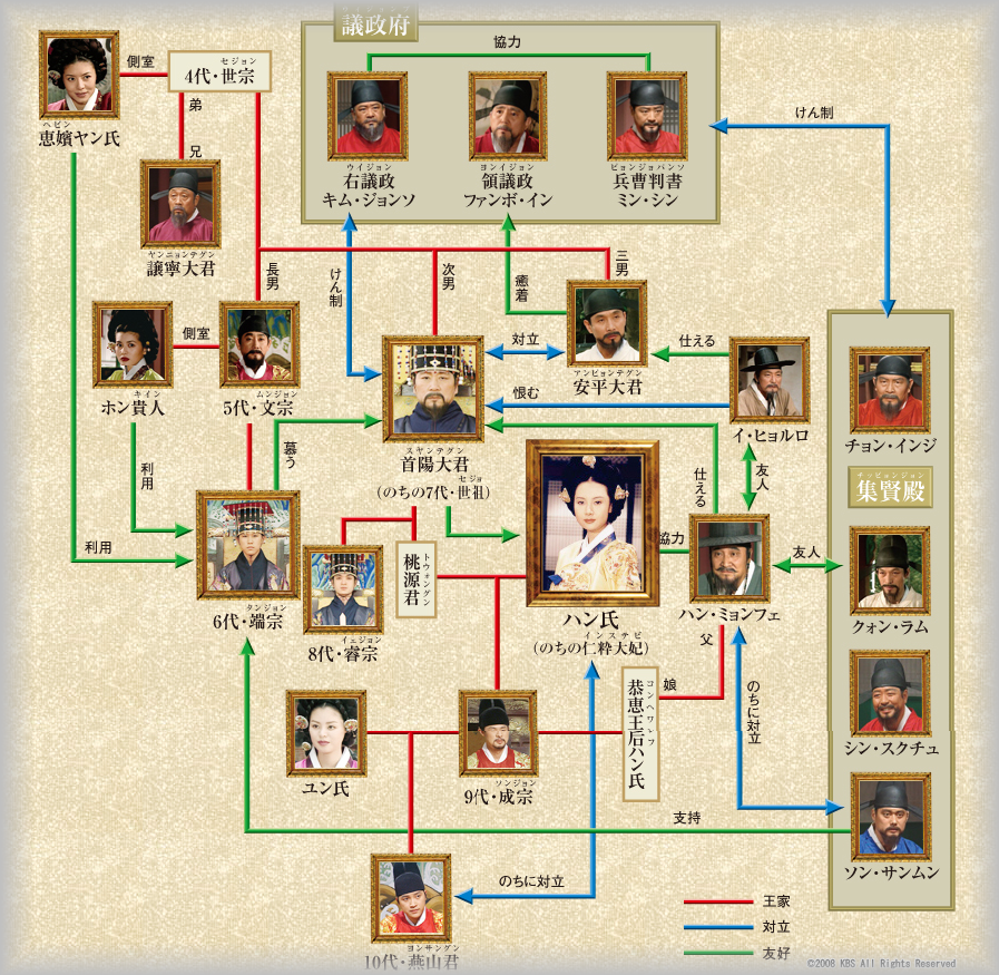 宮殿では議政府中心の政治を目指すキム・ジョンソら朝廷の重臣たちと、王族の権威を守ろうとする文宗の弟 首陽大君らの対立が激しさを増していく。