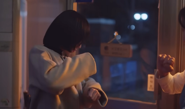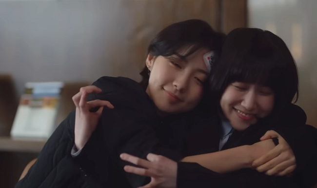 ヨンウがペットボトルの蓋を開けられずにいると、