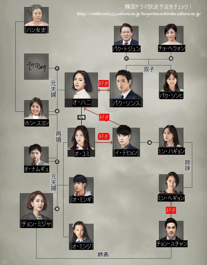 ★ドロドロ復讐劇ドラマとして日本でもおなじみの「福寿草」を書いた脚本家ヨ・ジョンミさんの作品です。個人的にオ・ヒョンギョンさんは好きなんですが、ホン・アルムさんがあまり好きじゃなくて、このドラマにも正直あまり魅力を感じていないワタクシですが、ドロドロ系愛憎モノがお好きな方にはくー、たまらん!なドラマであろうと想像してます。ヒョンギョンさん演じる元妻ミジャがとにかくとんでもない悪女らしいですね。どこまでも卑劣でカネのためなら何でもする怖い女。似合いそう( ̄▽ ̄) ニヤ