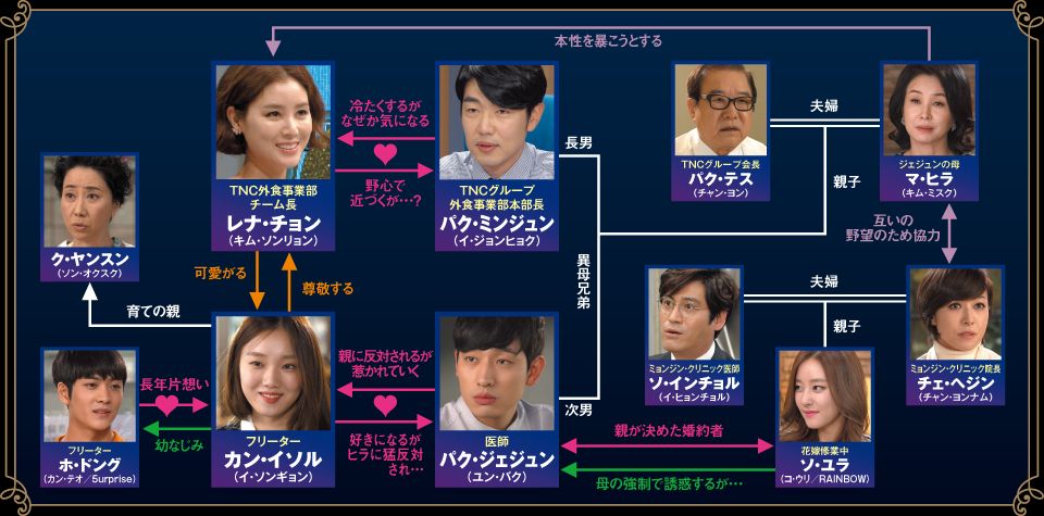 ジェジュンの母でTNCグループ会長の後妻マ・ヒラ(キム・ミスク)はジェジュンを後継者にするため、良家の娘ユラとの婚姻を急かしていた。